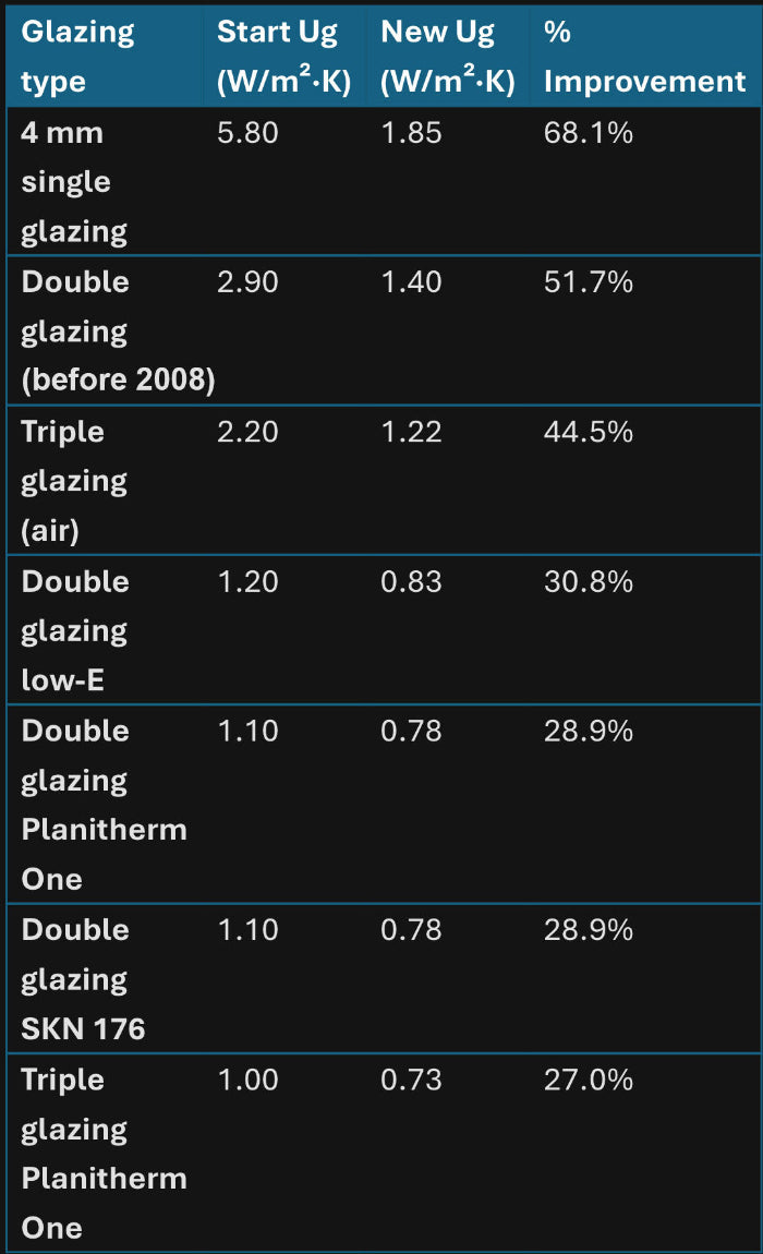 • Boost EPC Ratings: Improves U-values across single, double, and triple glazing, contributing to measurable energy performance gains.